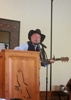 Always entertaining, Marshall Trimble sang ballads and told stories of early Arizona. Starting with an explanation about Arizona's four seasons, "Almost Summer, Summer, Still summer and Christmas," he shared his passion for this wonderful state. Growing up in Ashfork, he has a lot of memories of Arizona. The Historical League is pleased to present a donation to Marshall Trimble's Scholarship Program at Scottsdale Community College. https://maricopa.academicworks.com/opportunities/8899